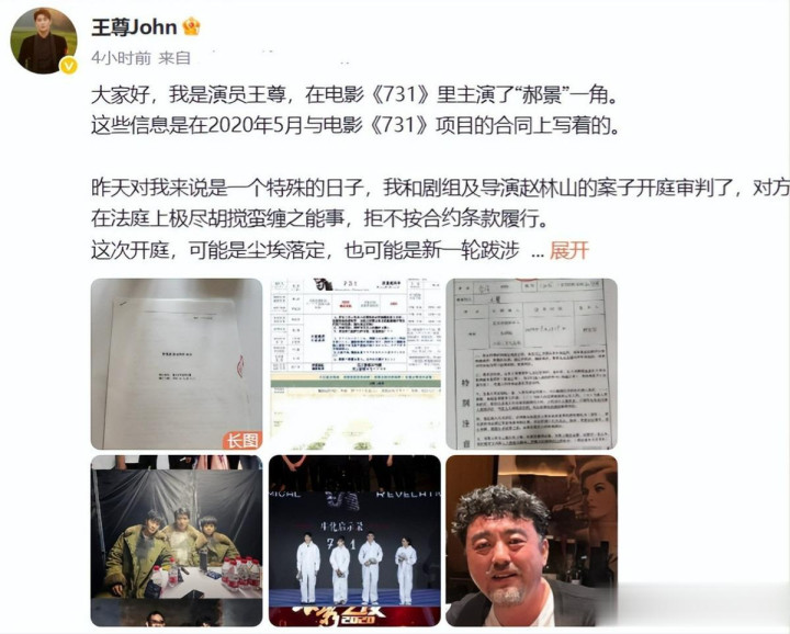 不久前,一位名叫王尊的演员更是在微博上鸿篇巨制写了一篇控诉《731》导演赵林山的长文,直指赵林山拖欠其片酬。
