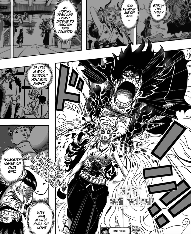 凯多尽然没死!他再度登场干预和之国,欲击杀桃之助却被大和用身段挡下挫折,导致大和领盒饭。