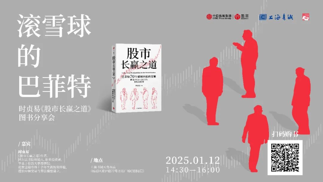 2025年1月12日(周日)14:30—16:00,宽容前来与《股市长赢之谈》作家时贞易一齐,揭开巴菲特滚雪球的真相!