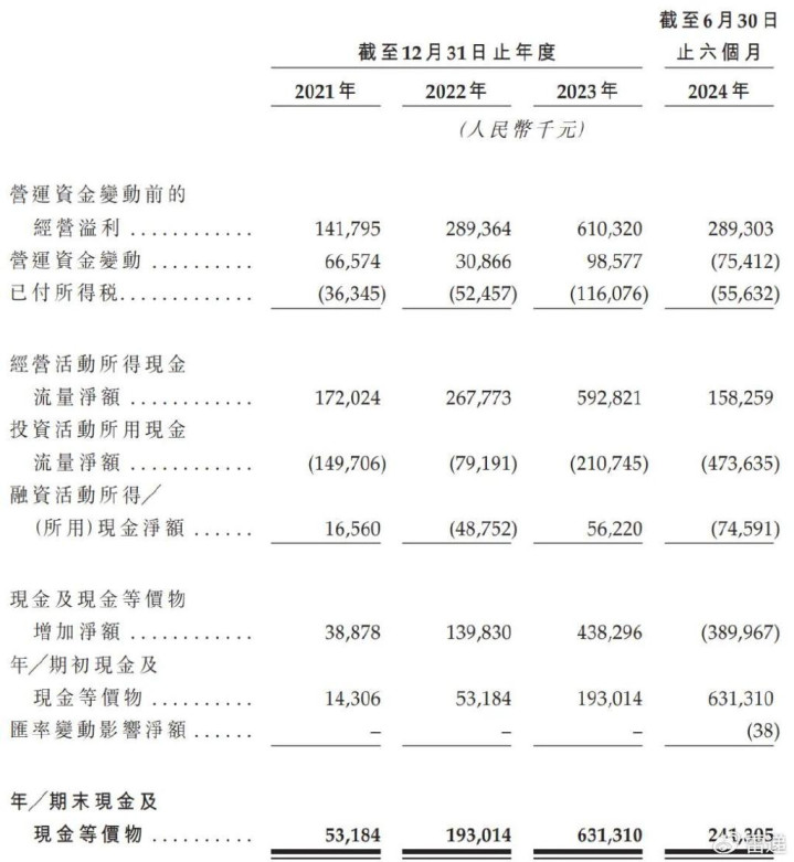 结果2024年6月30日,沪上大姨握有的现款及现款等价物为2.41亿元。