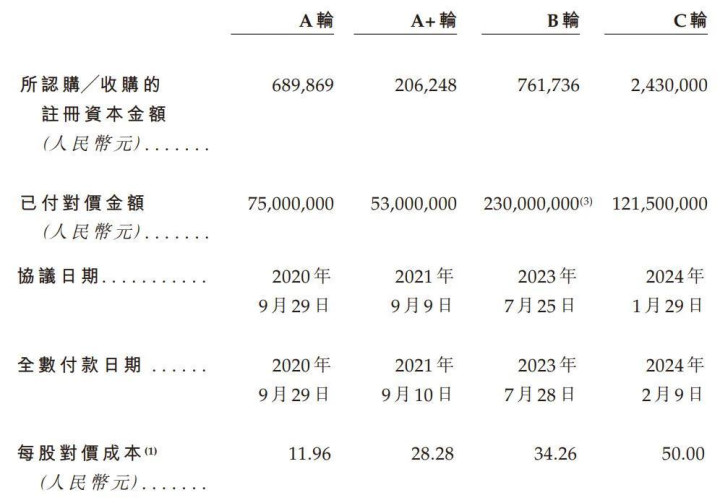 2023年7月,沪上大姨完成2.3亿元B轮融资,每股成本34.26元;2024年2月,沪上大姨完成1.215亿元C轮融资,每股成本50元;