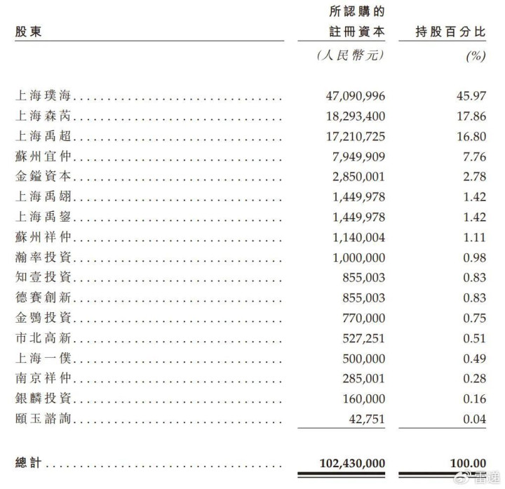 此外,苏州宜仲握股为7.76%,金镒成本握股为2.78%,上海禹翃、上海禹鋆永诀握股1.42%,苏州祥仲握股为1.11%,瀚率投资握股为0.98%,知壹投资、德赛革命永诀握股为0.83%;