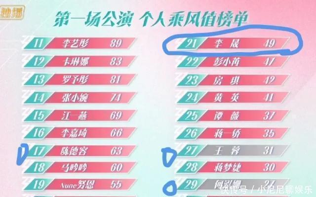 除了李晟的超低排名,以及倪虹洁和曹颖的闯入前十。