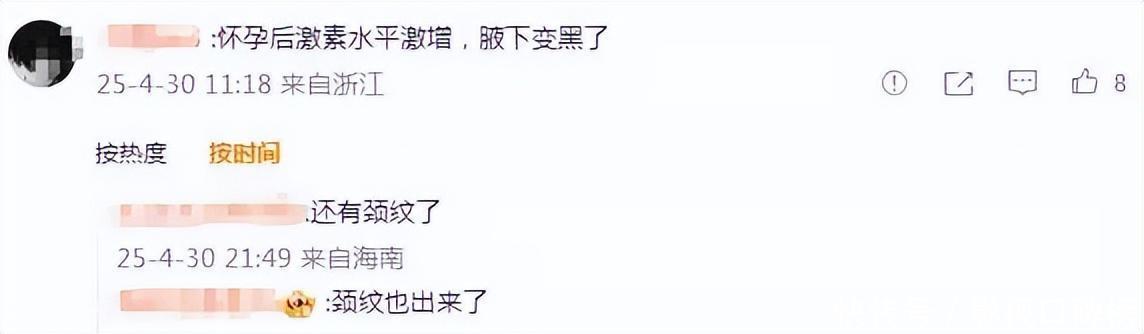 有网友默示杨采钰脖子上显豁的颈纹,腋下变黑,这些可能是孕珠后躯壳天然发生的变化。