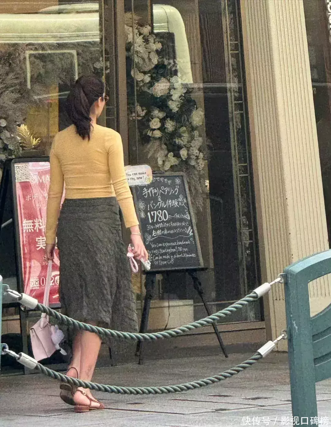4月16日有网友晒出在日本街头偶遇杨采钰挺着孕肚,今日她一稔黄色长袖上衣下搭乌绿色长裙,脚踩着平底凉鞋。杨采钰走路时着重翼翼,身边还有一位男士很贴心随着她,缓和她。