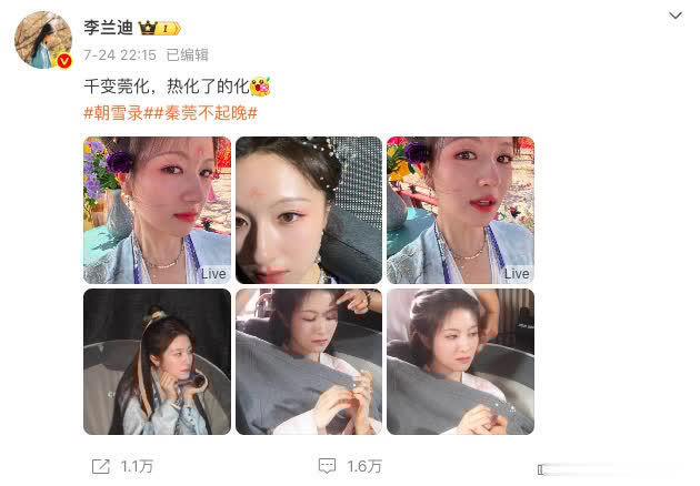从片场的花絮照来看,戏外的李兰迪反而有种反差的可儿,是个王人备的甜妹。