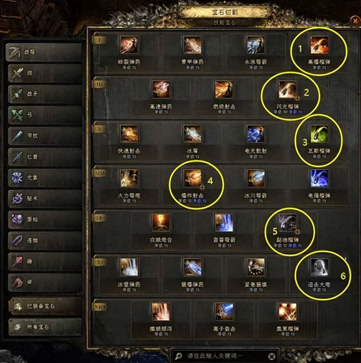 手段辘集:有11级主登程点段石前,手动丢榴弹,手段升级和开孔优先给爆炸射击和高爆榴弹(戒备榴弹只用开到3孔即可);高爆榴弹+多重射击Ⅱ+火焰合作+元素军械Ⅱ;解锁陡然引信Ⅰ后刷图过程种可以有计划替换火焰合作,打BOSS时换追思, 跑图极大提妙手感;爆炸射击+多重射击Ⅱ+双管王人下Ⅱ;7级主登程点段解锁爆炸射击,咱们后续将依赖它来引爆通盘的榴弹,提妙手感,闪光榴弹+多重射击Ⅱ+定身Ⅰ(有过剩的可以上,不彊求)3级主登程点段石解锁,需要任务6级,主要用于打BOSS定身或者被围攻时脱 身用,引爆相比快;瓦斯榴弹+多重射击Ⅱ+陡然引信Ⅰ;灰烬之捷,驯从野兽(找迅捷光环的野兽)