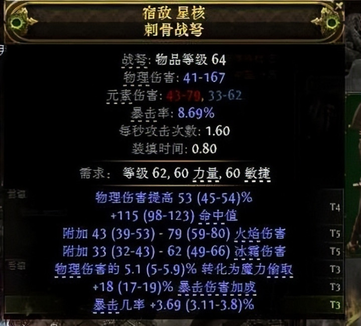 重点解读1.看重:火、冰、电,三大基础抗性尽可能堆满,尽可能找一些生命、躲避、护甲等看重词缀(咱们有插旗天资,抗性找到50%把握即可)2.伤害:基本的刀兵需要更换知足DPS,手套、措施等部位适量的找到1-2条点伤词缀3.观点:刷图累积原始资金和升级为主,BD强度敷裕后去挑战升华3