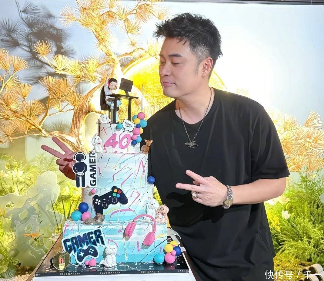 陈赫的寿辰蛋糕也很有特点,三层游戏主题的,上头有游戏手柄和扮装模子,还有他家宠物猫狗的卡通形象。 他自己有个电竞战队,这蛋糕显着是投其所好。
