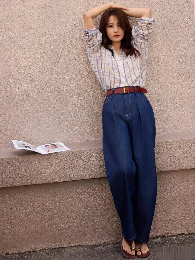 秋天一到,各式衬衫运行流行起来。高圆圆上半身汲取了一件格子款,合座情绪偏淡,是以视觉上不易显老,同期低调中透着精细感;挽起的袖子衬得东说念主多了一份无礼不羁感。腿上是一款深蓝色牛仔裤,其在搭配上的实用性不必多说,宽松剪裁可独霸各式所在,岂论是站着已经走路,齐能悄无声气营造潇洒气场,又可修饰双腿线条。