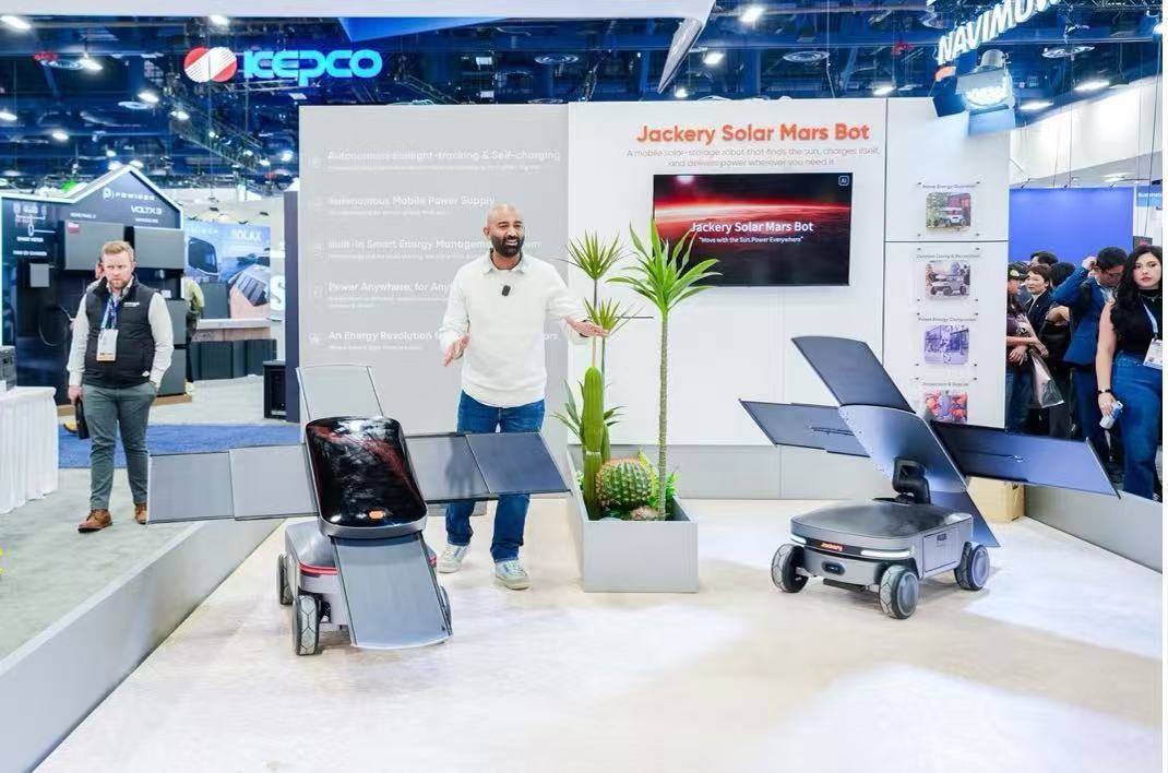 在2026 CES展会上,华宝新能的展台前东说念主头攒动,Jackery Explorer 1500 Ultra、光储火星机器东说念主、太阳能遮阳棚(Jackery Solar Gazebo)三款新品组成的家具矩阵,全面粉饰了家庭救急、庭院活命等多元场景,每一款家具齐潜伏着对用户需求的久了瞻念察与本事浮松。
