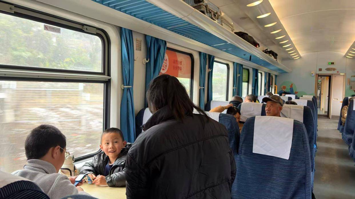 敞亮的车厢里欧洲杯体育,一位奶奶靠着椅背正沉睡,小桌上放着簇新鸡肉和电煲,邻座别称小孩和母亲坐在一起,眼睛眨巴眨巴望着窗外束缚后退的气象。这是2026年春运技巧7266公益慢火车上的宁静一幕,用乘客的话来说,“回家就像旅游一样”。