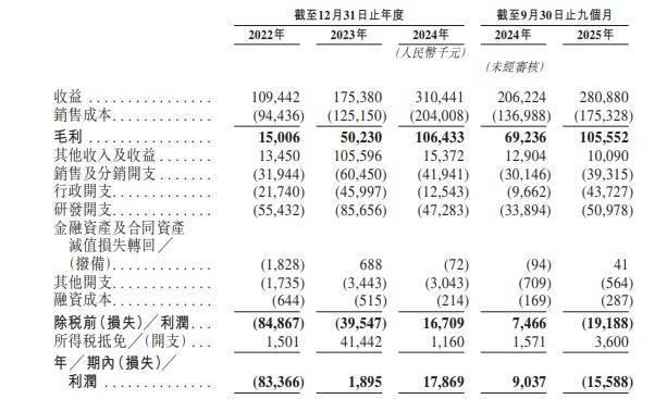 2022年、2023年、2024年以及2025年前九个月,华沿机器东谈主收入分袂为1.09亿元、1.75亿元、3.10亿元、2.81亿元,净利润分袂为-8336.6万元、189.5万元、1786.9万元、-1558.8万元。