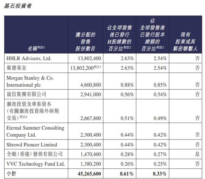 华沿机器东谈主的基石投资者包括HHLR Advisors, Ltd.、广发基金、Morgan Stanley & Co.International plc、晟信集团有限公司、灏浚投资及华泰成本、Eternal Summer ConsultingCompany Ltd.、Shrewd Pioneer Limited、全顺(香港)发展有限公司、VVC Technology Fund Ltd.。